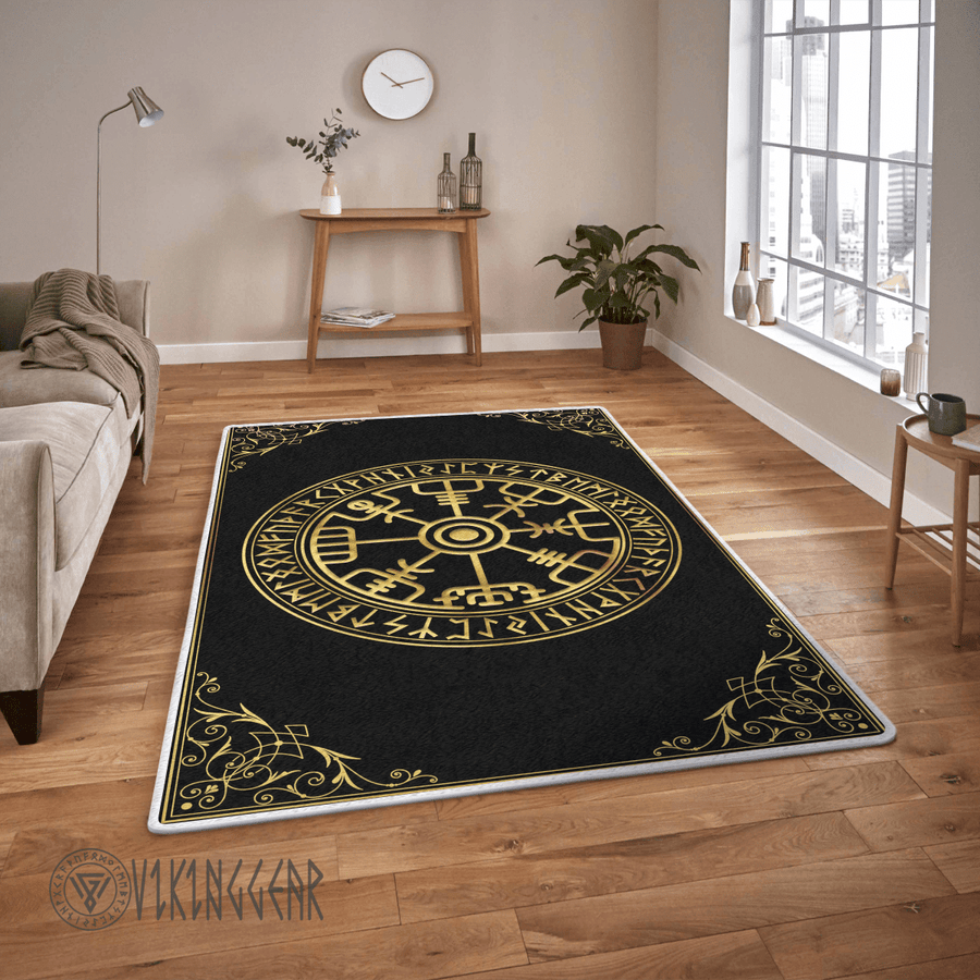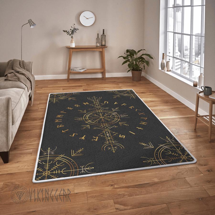 Theonederland – Gold Vegvisir and Rune Viking Area Rug