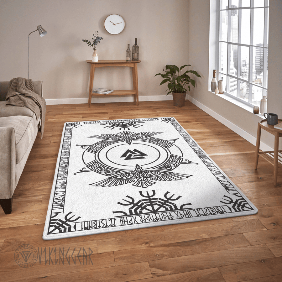 Theonederland – Viking Area Rug Raven Of Odin And Norse Symbols