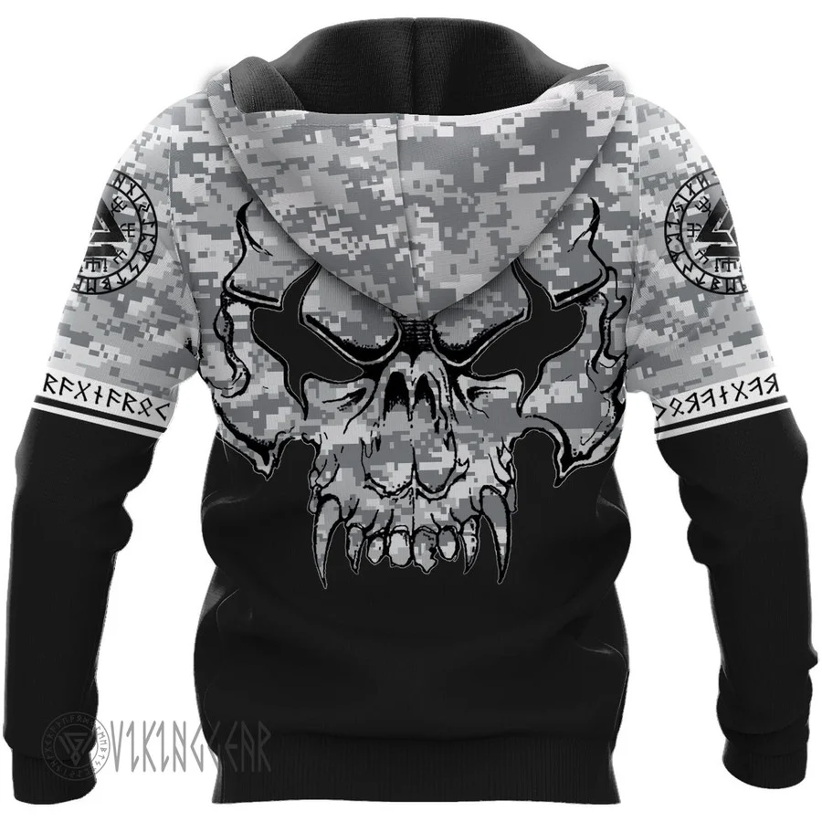 Theonederland – Camouflage Valknut Skull Viking Hoodie For Warrior
