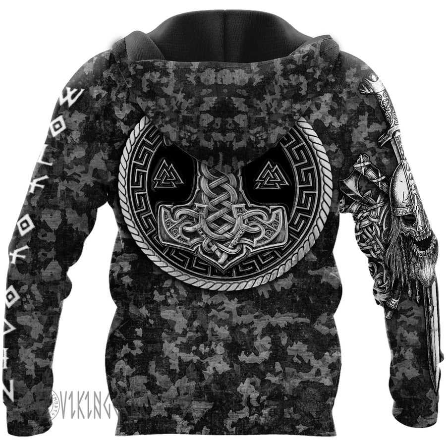 Theonederland – Fenrir Wolf And Hammer Viking Hoodie Strong Camouflage