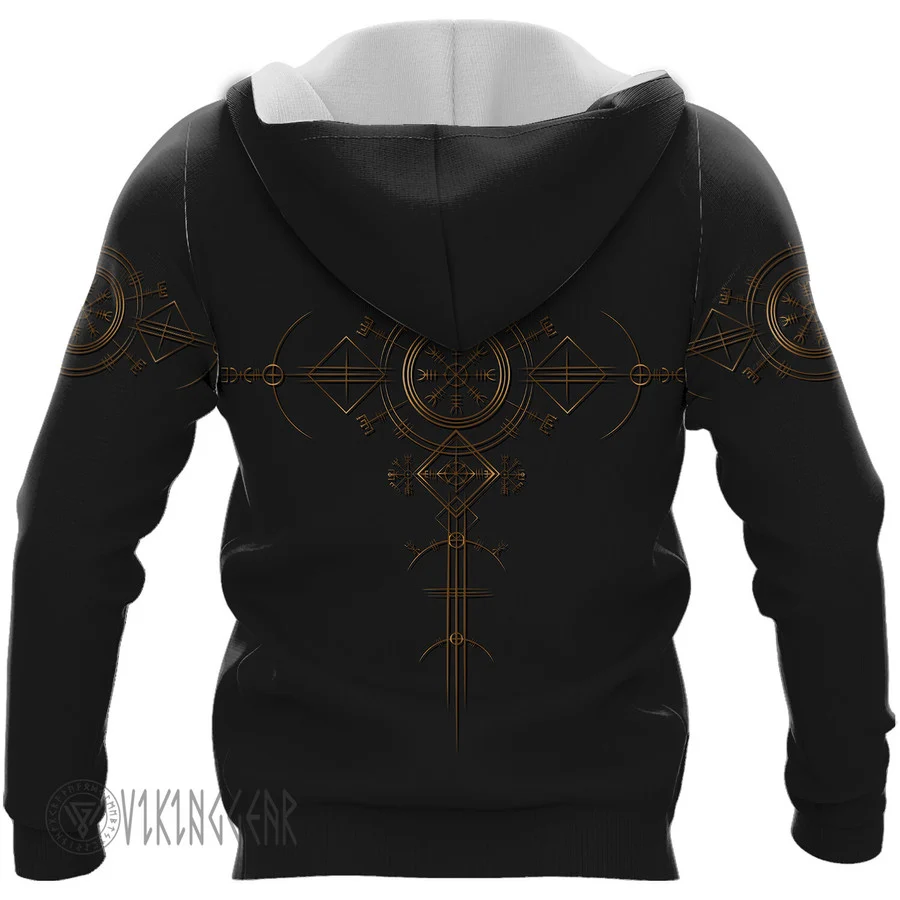 Theonederland – Golden Helm Of Awe Black Viking Hoodie