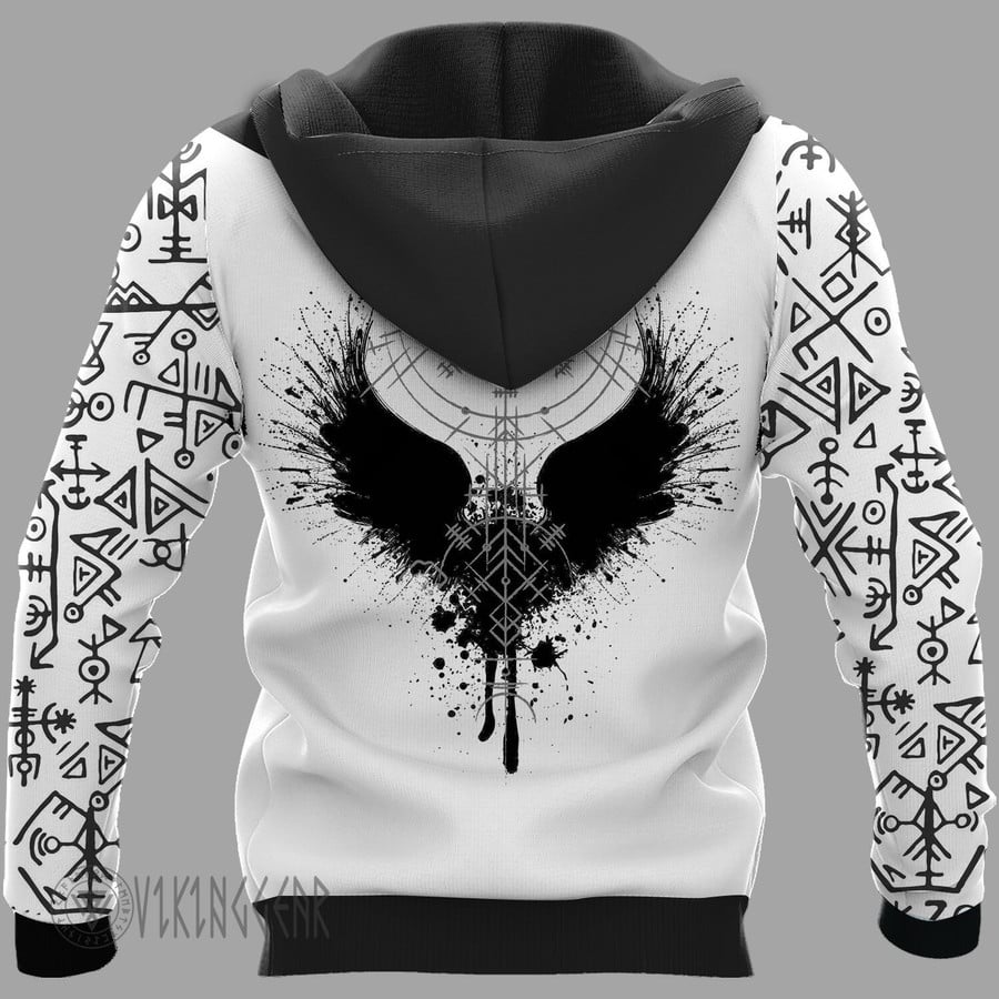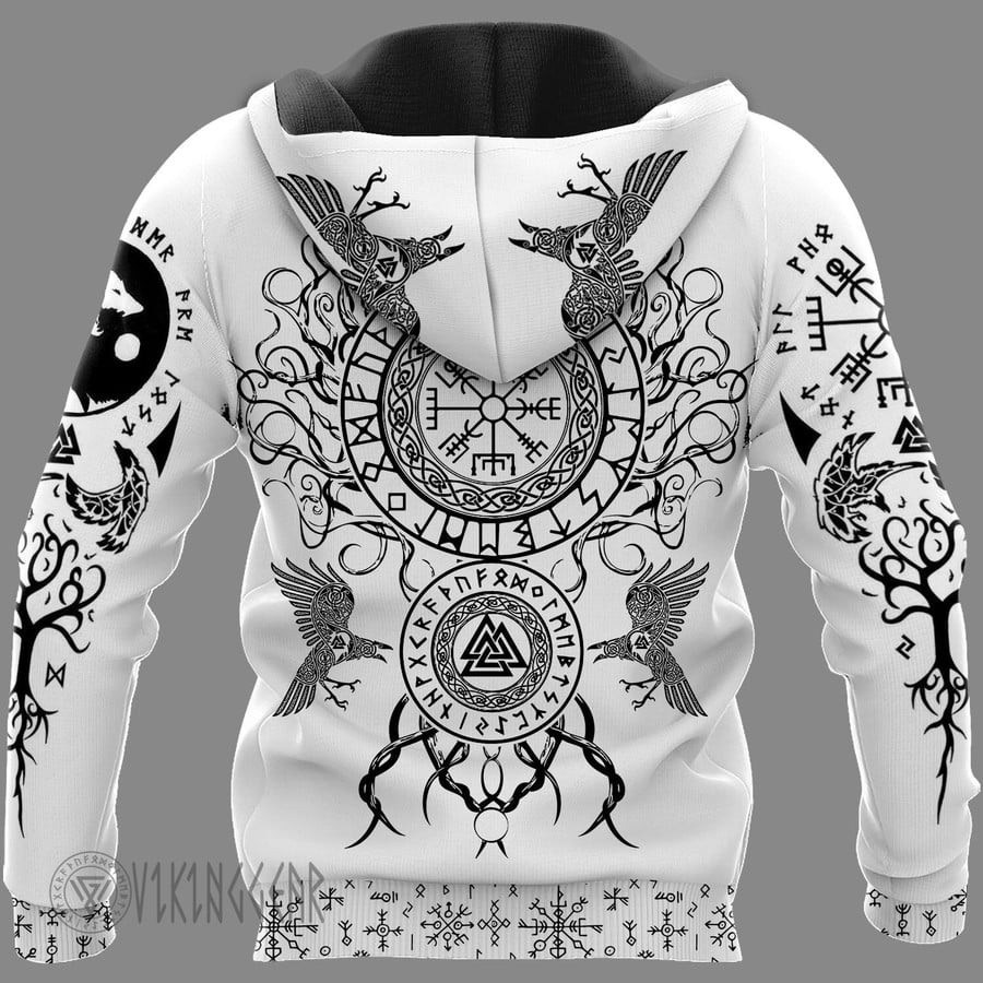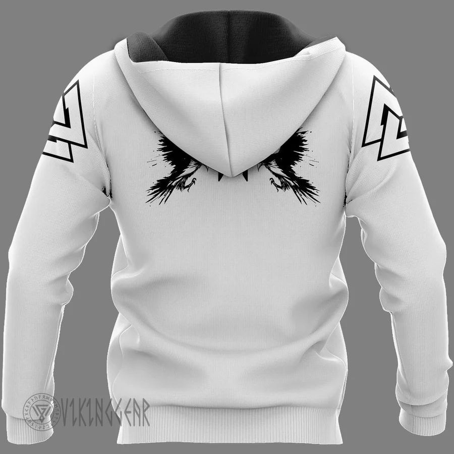 Theonederland – Odin With Raven And Vegvisir Viking Hoodie White