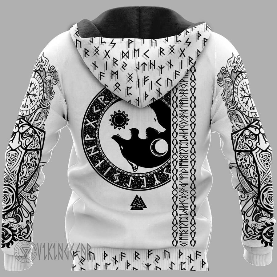 • Theonederland - Raven And Wolf White Viking Hoodie