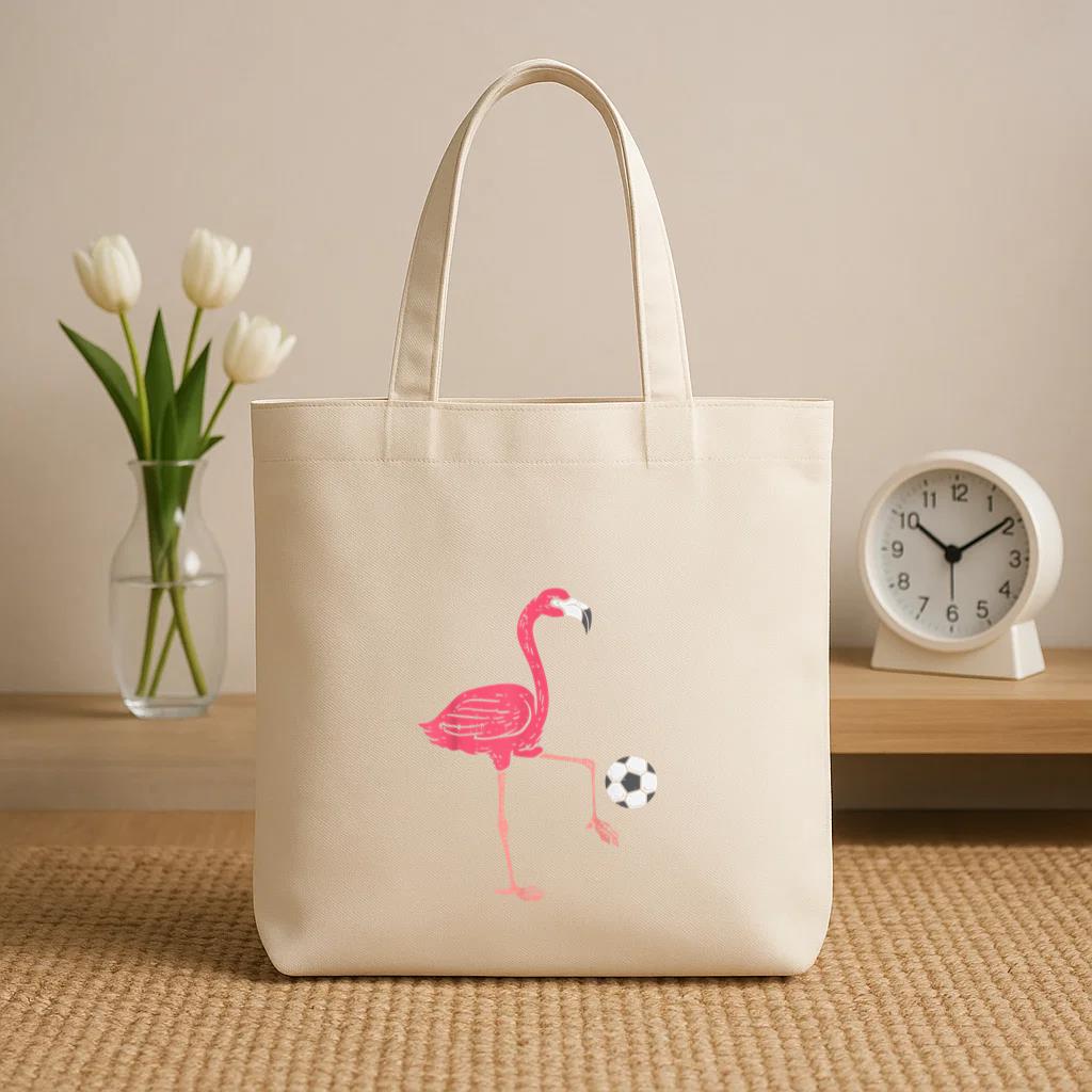 • Flamingo Playing Soccer Canvas Tote Bag
