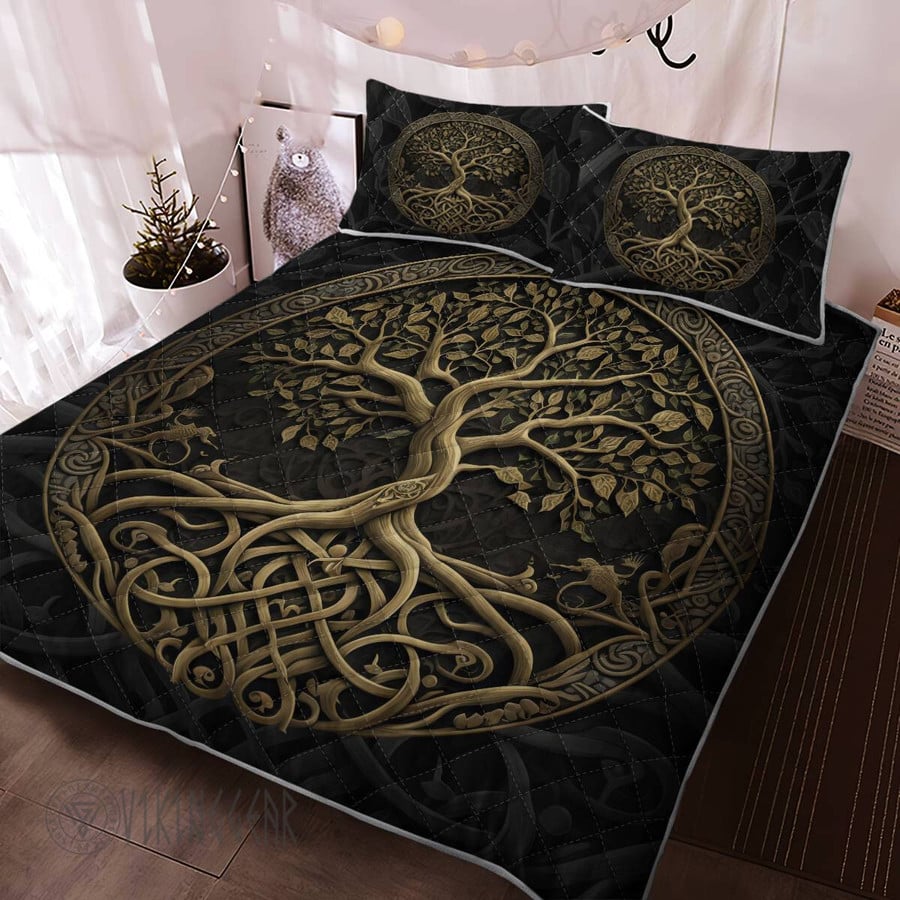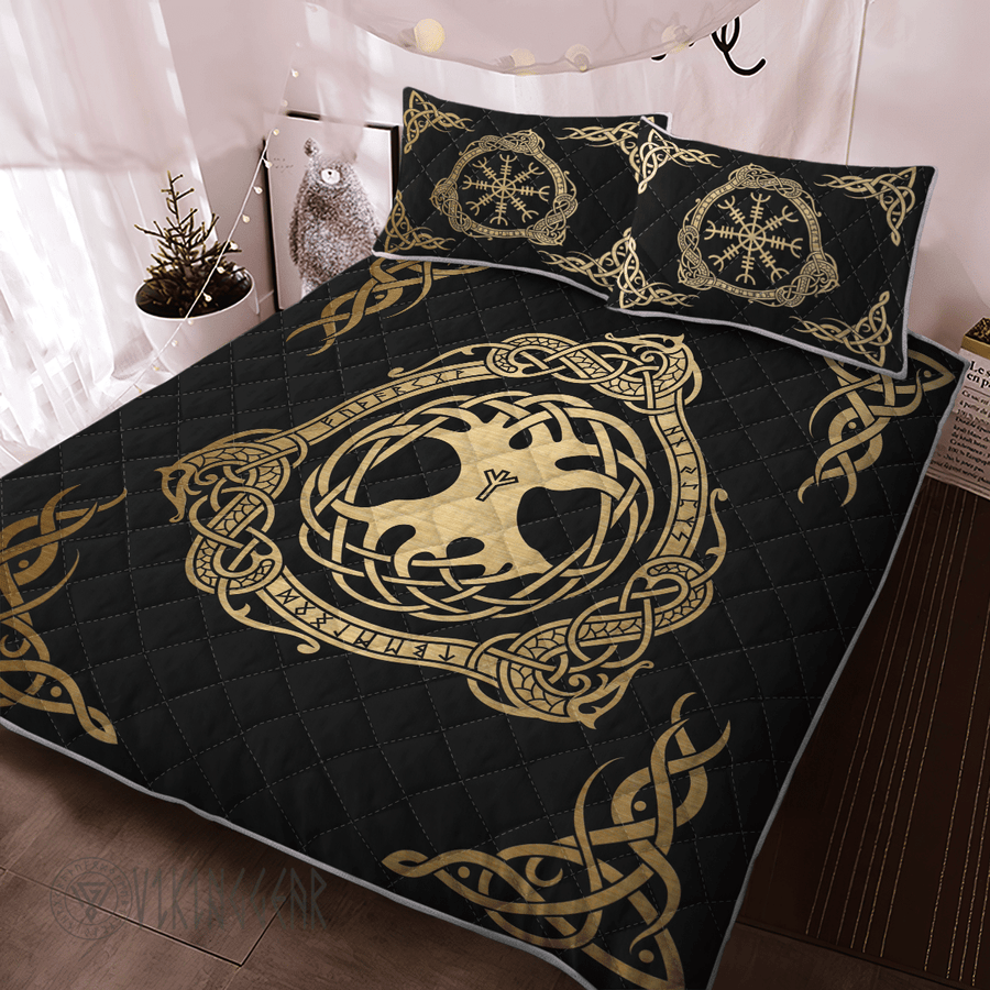 Theonederland – Tree Of Life Yggdrasil Golden Viking Quilt Set