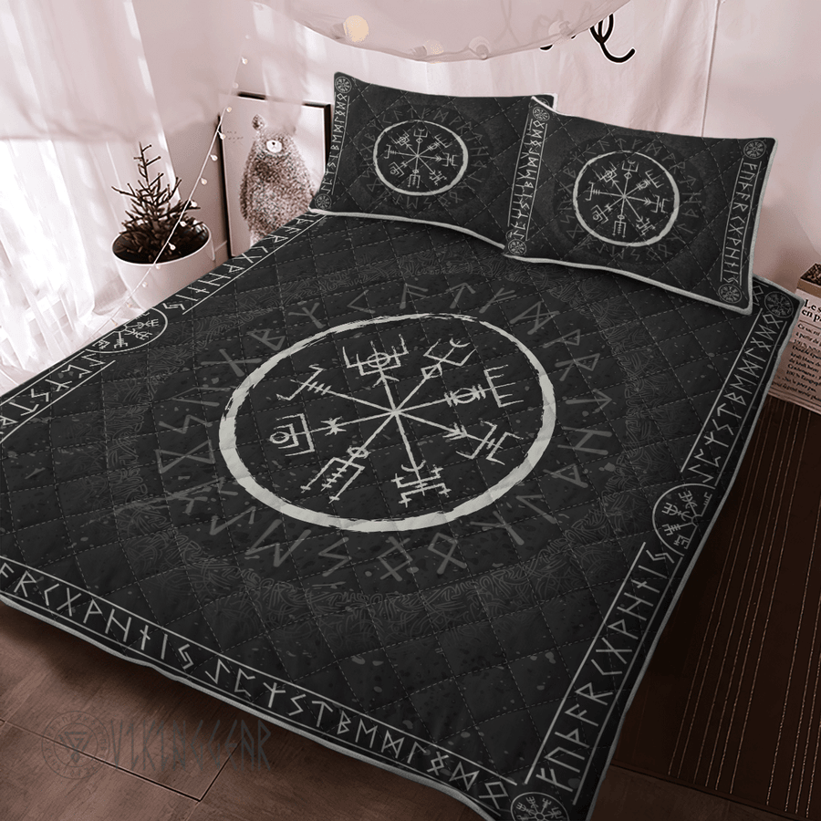 Theonederland – Vegvisir And Runic Viking Quilt Set Vintage Style