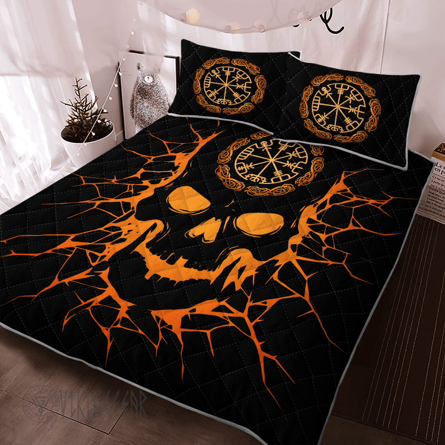 Theonederland – Vegvisir Skull On Lava Viking Quilt Set