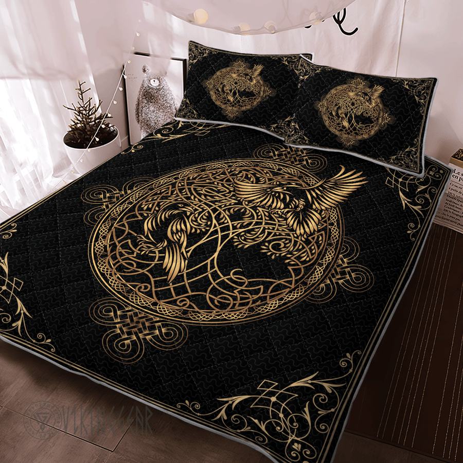 Theonederland – Odin’s Celtic Raven on the background Yggdrasil Viking Quilt Set