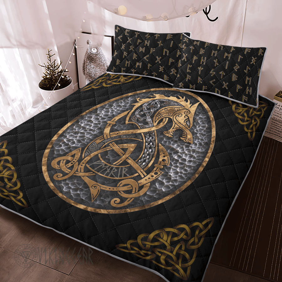 Theonederland – Nordic Fenrir Wolf With Golden Color Viking Quilt Set