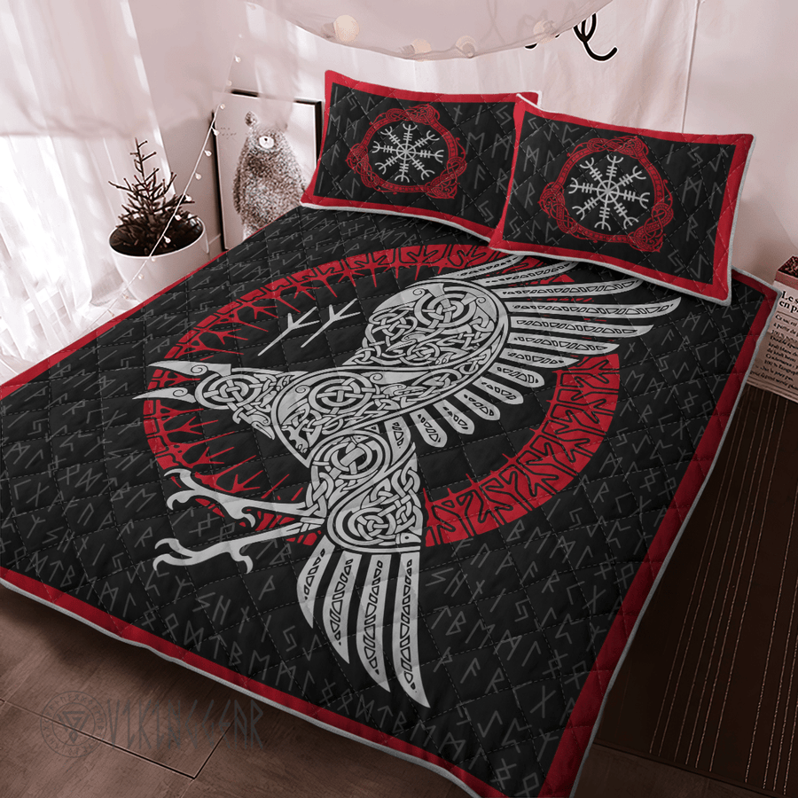 Theonederland – Raven And Vegvisir Symbol Viking Quilt Set