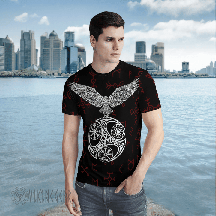 Theonederland – Odin Art And Bear Vegvisir Viking T-shirt With Red Design