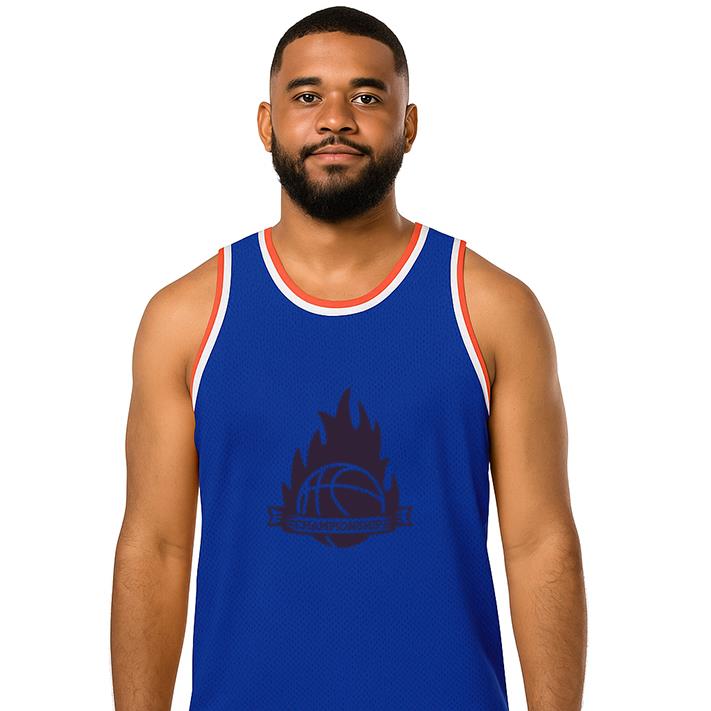 Step onto the basketball court with confidence wearing Championship Flame Fire Ball Badge Basketball Jersey build basketball jersey.