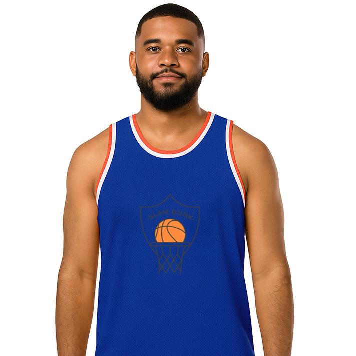 Step onto the basketball court with confidence wearing Slam Dung Ball Rim Colored Badge Sticker Basketball Jersey build basketball jersey.