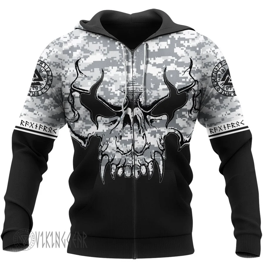 With a design inspired by Norse mythology, Angry Skull Camo Vintage Viking Hoodie embodies Viking spirit. Own it to confidently showcase your Viking style.