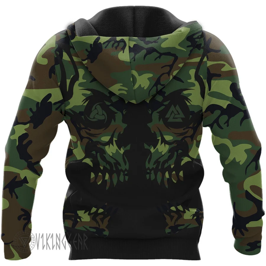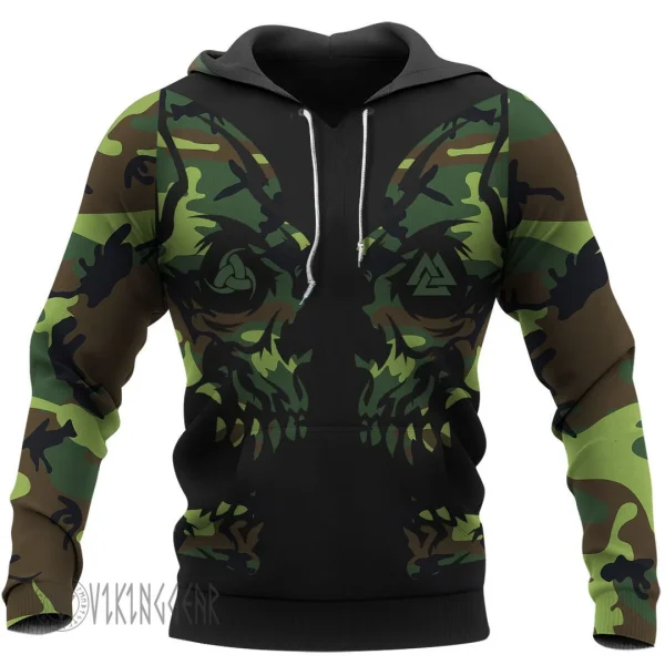 With a design inspired by Norse mythology, Camo Valknut Skull Art Viking Hoodie embodies Viking spirit. Own it to confidently showcase your Viking style.