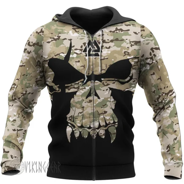 With a design inspired by Norse mythology, Camouflage Valknut Skull Viking Hoodie embodies Viking spirit. Own it to confidently showcase your Viking style.