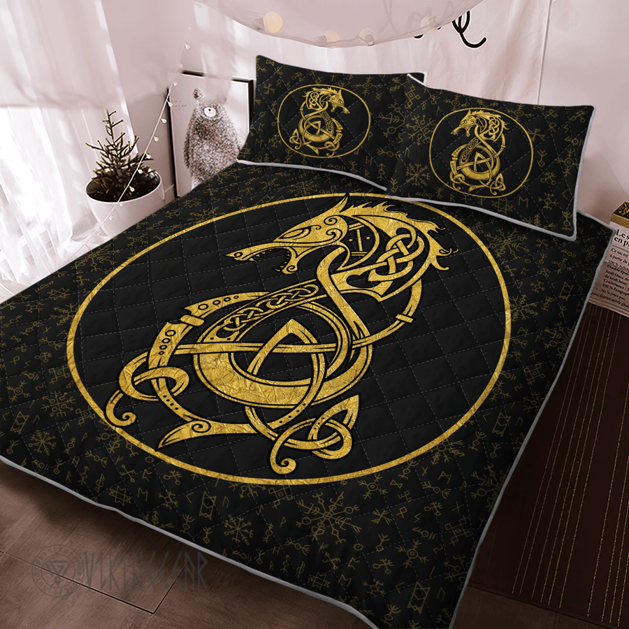 With its design inspired by Norse mythology, our Fenrir Inside The Circle Viking quilt set captures the essence of the Viking spirit. Introduce this piece into your space and confidently display your style.