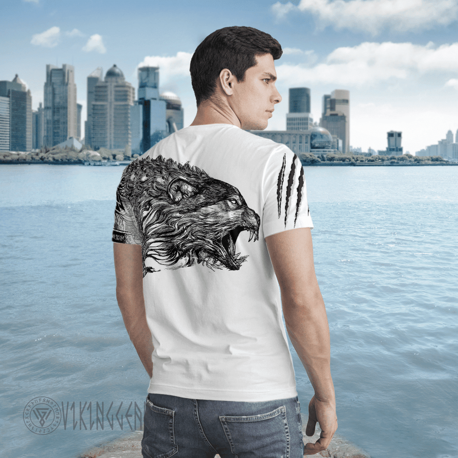 With a design inspired by Norse mythology, Fenrir Simple Design Viking T-shirt embodies Viking spirit. Own it to confidently showcase your Viking style.