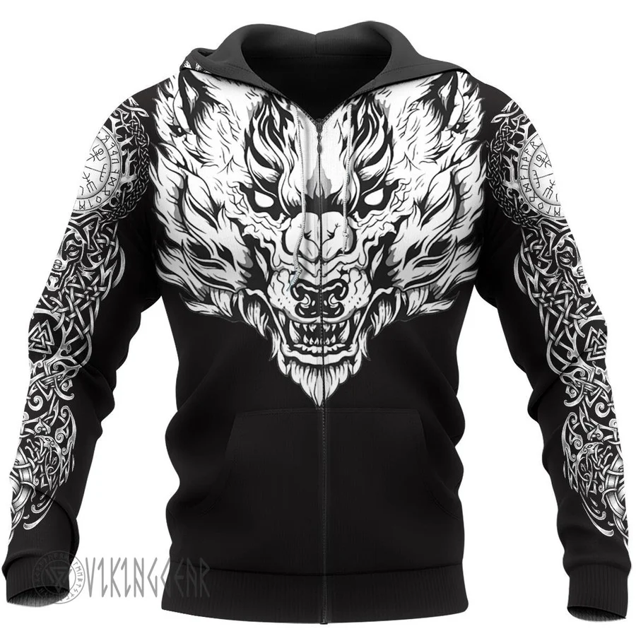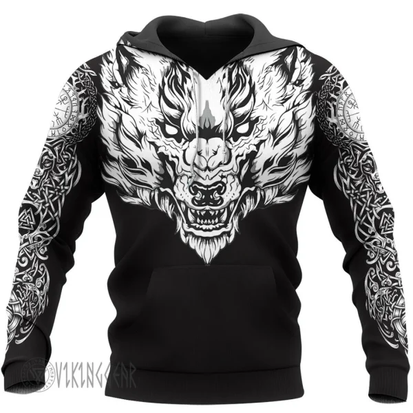 With a design inspired by Norse mythology, Fenrir Wolf Axe And Sword Viking Hoodie embodies Viking spirit. Own it to confidently showcase your Viking style.
