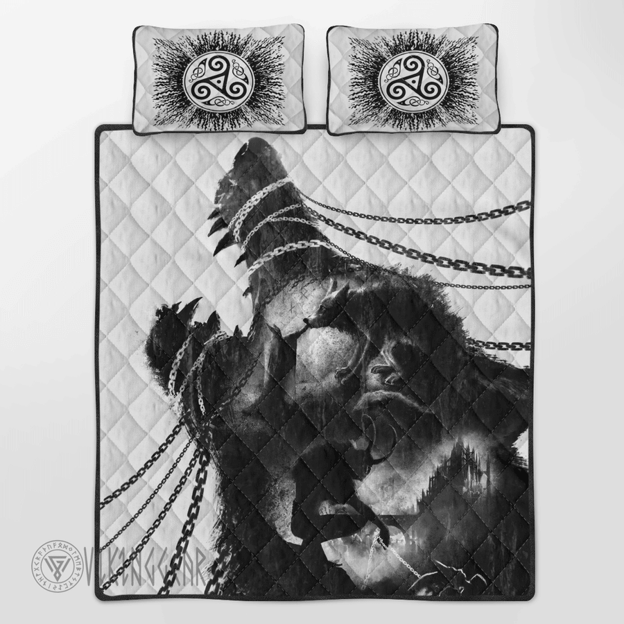 With its design inspired by Norse mythology, our Fenrir Wolf Black Design Viking quilt set captures the essence of the Viking spirit. Introduce this piece into your space and confidently display your style.