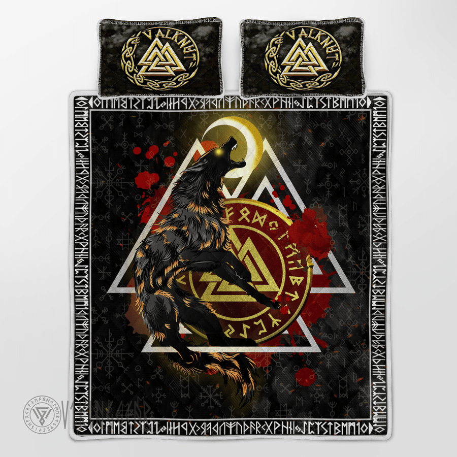 With its design inspired by Norse mythology, our Fenrir Wolf Valknut Graphic Viking quilt set captures the essence of the Viking spirit. Introduce this piece into your space and confidently display your style.