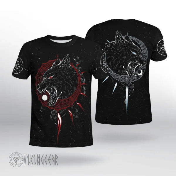 With a design inspired by Norse mythology, Hati and Skoll Viking T-shirt embodies Viking spirit. Own it to confidently showcase your Viking style.