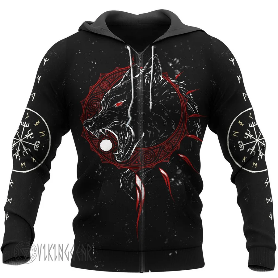 With a design inspired by Norse mythology, Hati and Skoll Wolf Viking Hoodie embodies Viking spirit. Own it to confidently showcase your Viking style.