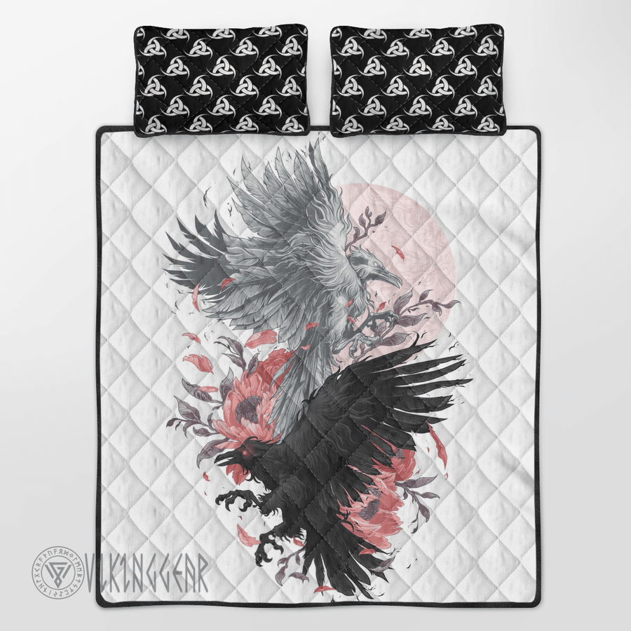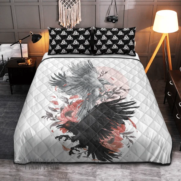 With its design inspired by Norse mythology, our Hugin And Munin Painting Viking quilt set captures the essence of the Viking spirit. Introduce this piece into your space and confidently display your style.