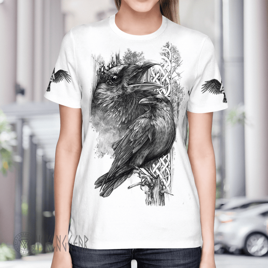 With a design inspired by Norse mythology, Huginn and Muninn Ravens Viking T-Shirt embodies Viking spirit. Own it to confidently showcase your Viking style.