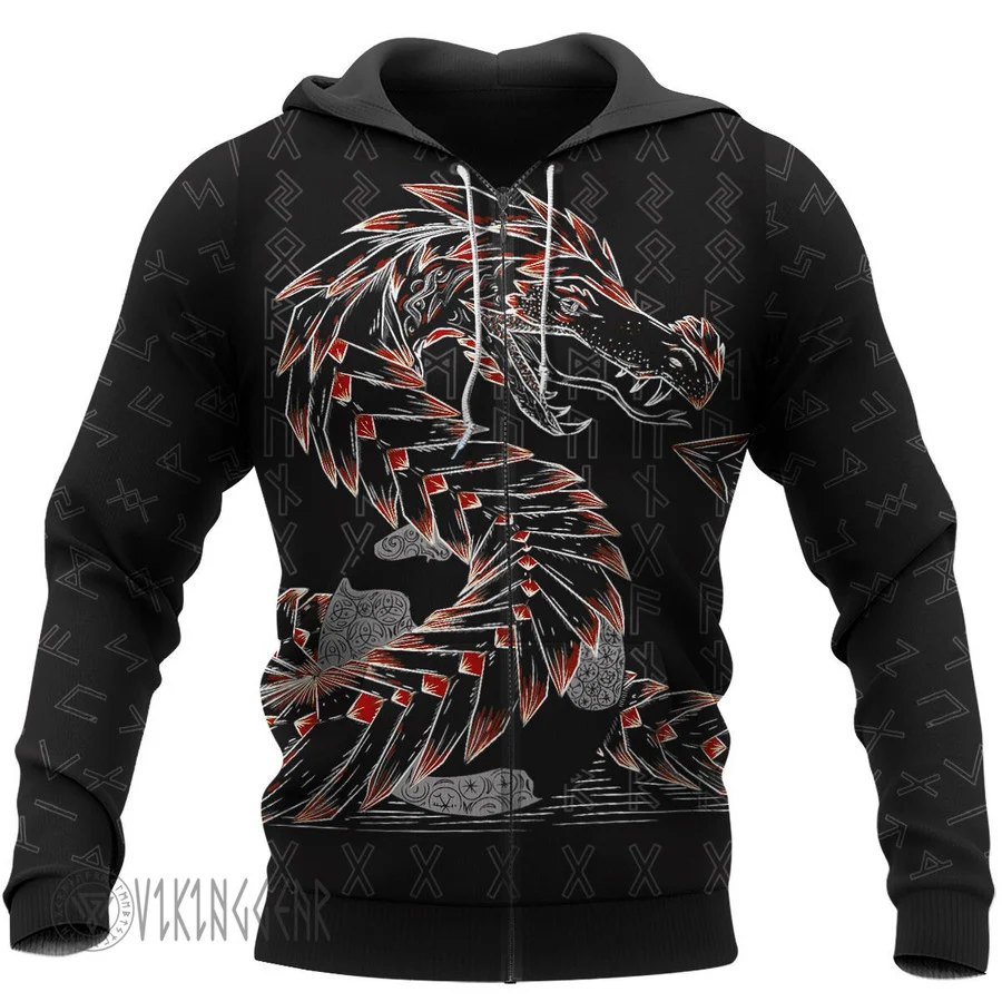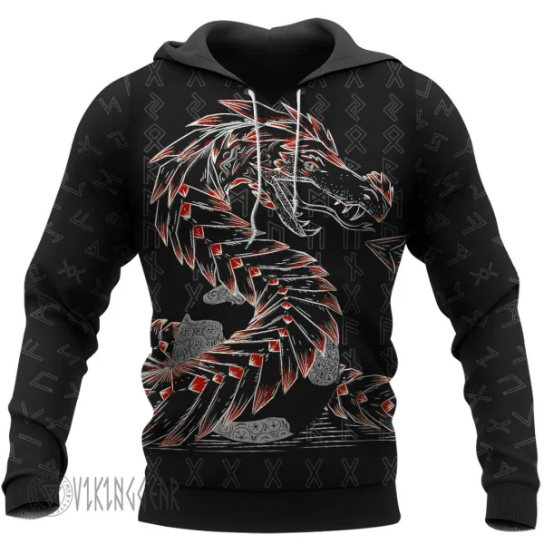 With a design inspired by Norse mythology, Odin And Jormungandr Red Design Viking Hoodie embodies Viking spirit. Own it to confidently showcase your Viking style.