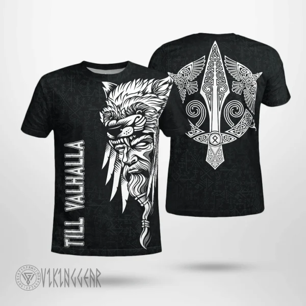 With a design inspired by Norse mythology, Odin Till Valhalla And Gungnir Viking T-Shirt embodies Viking spirit. Own it to confidently showcase your Viking style.