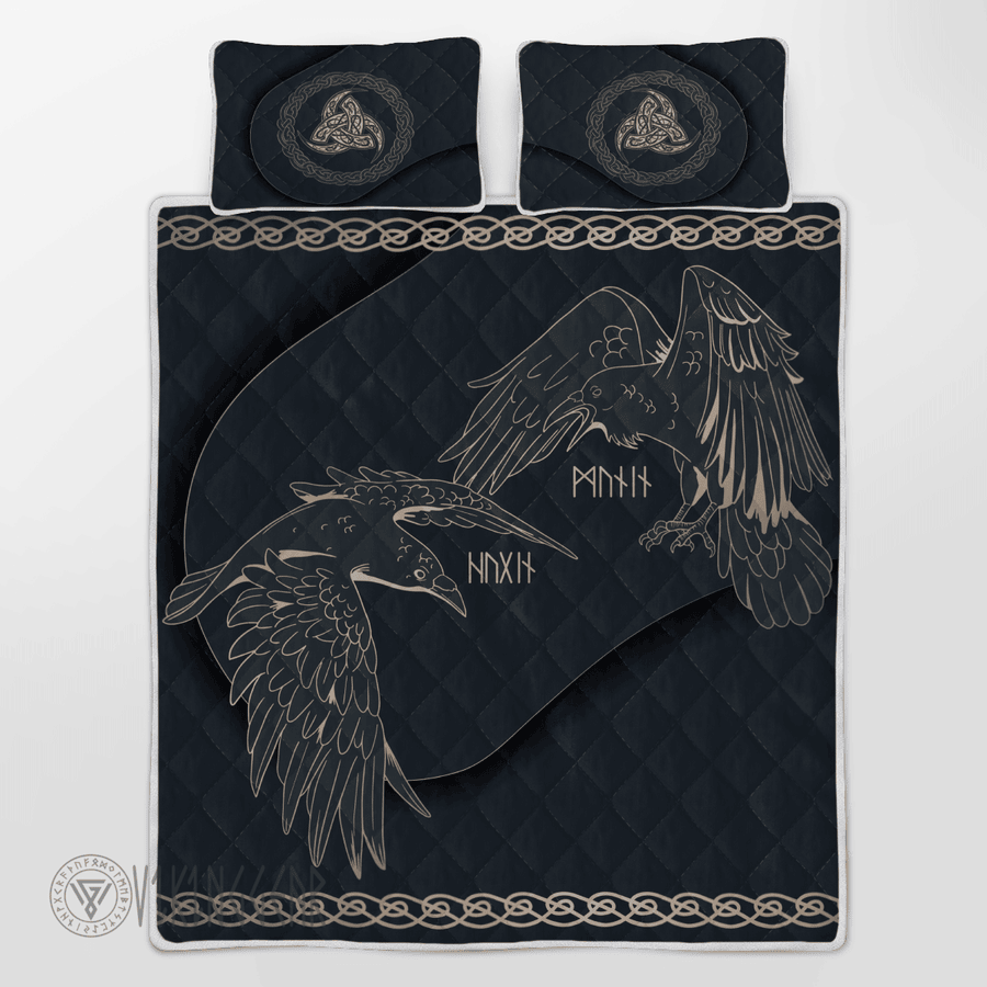 With its design inspired by Norse mythology, our Odin’s Ravens Huginn and Muninn Viking quilt set captures the essence of the Viking spirit. Introduce this piece into your space and confidently display your style.