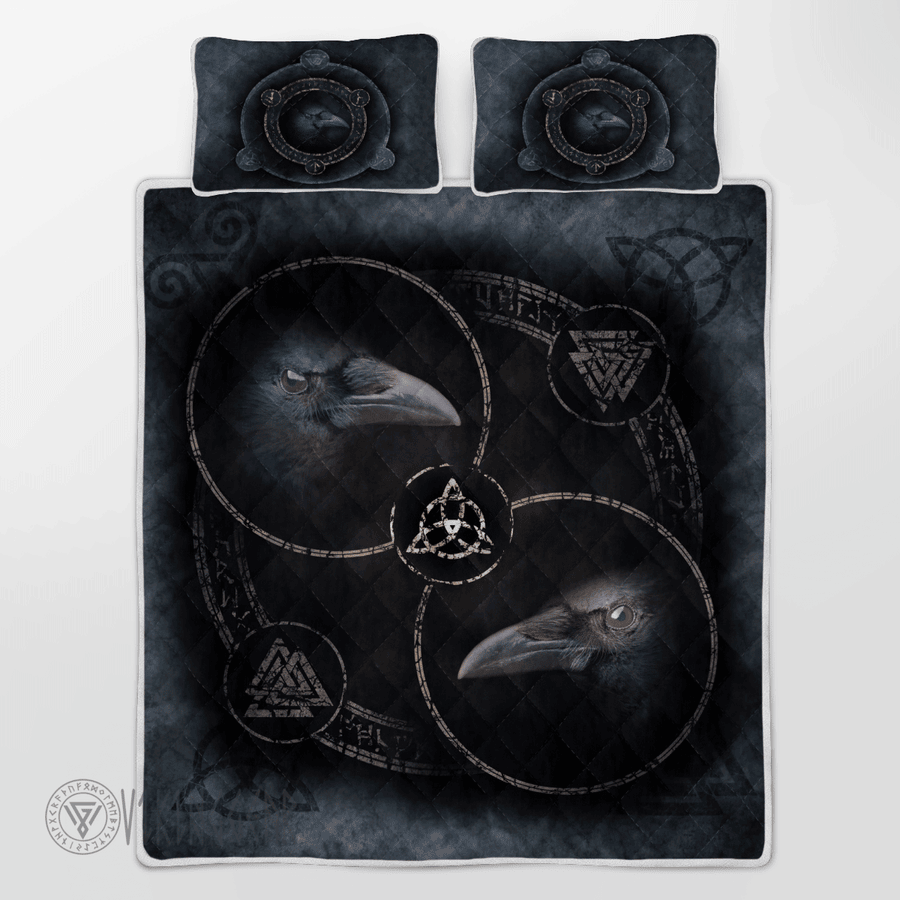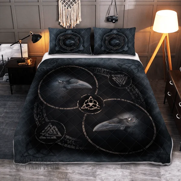 With its design inspired by Norse mythology, our Raven And Runic Symbols Viking quilt set captures the essence of the Viking spirit. Introduce this piece into your space and confidently display your style.