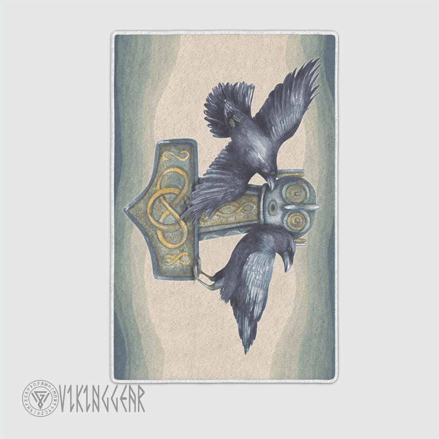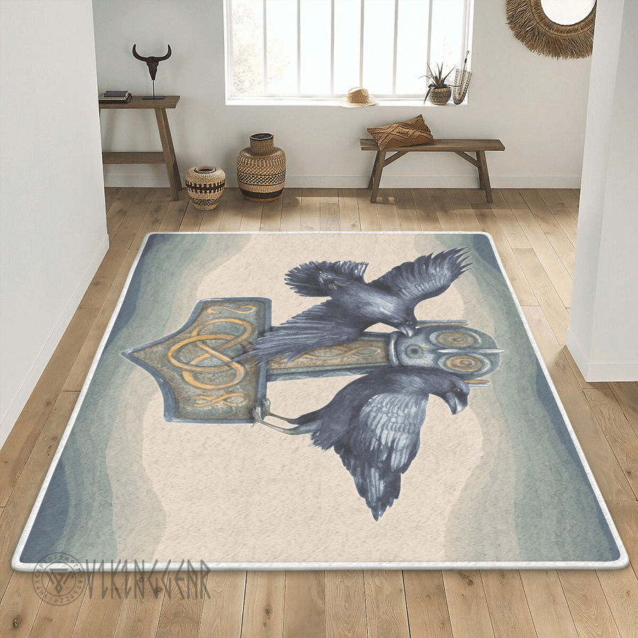 With its design inspired by Norse mythology, our Raven And Thors Hammer Mjolnir Painting Viking area rug captures the essence of the Viking spirit. Introduce this piece into your space and confidently display your style.