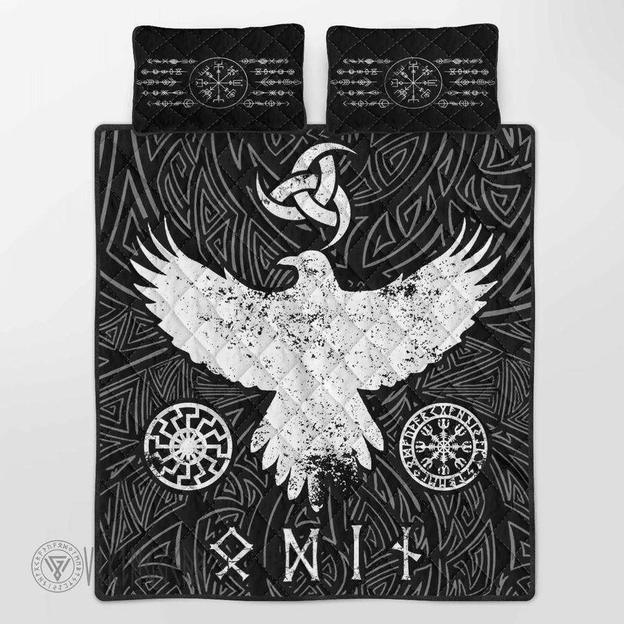 With its design inspired by Norse mythology, our Raven And Vegvisir Symbol Viking quilt set captures the essence of the Viking spirit. Introduce this piece into your space and confidently display your style.