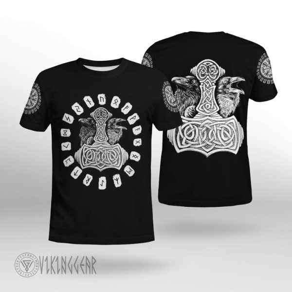 With a design inspired by Norse mythology, Raven Hammer Art Black Viking T-shirt embodies Viking spirit. Own it to confidently showcase your Viking style.