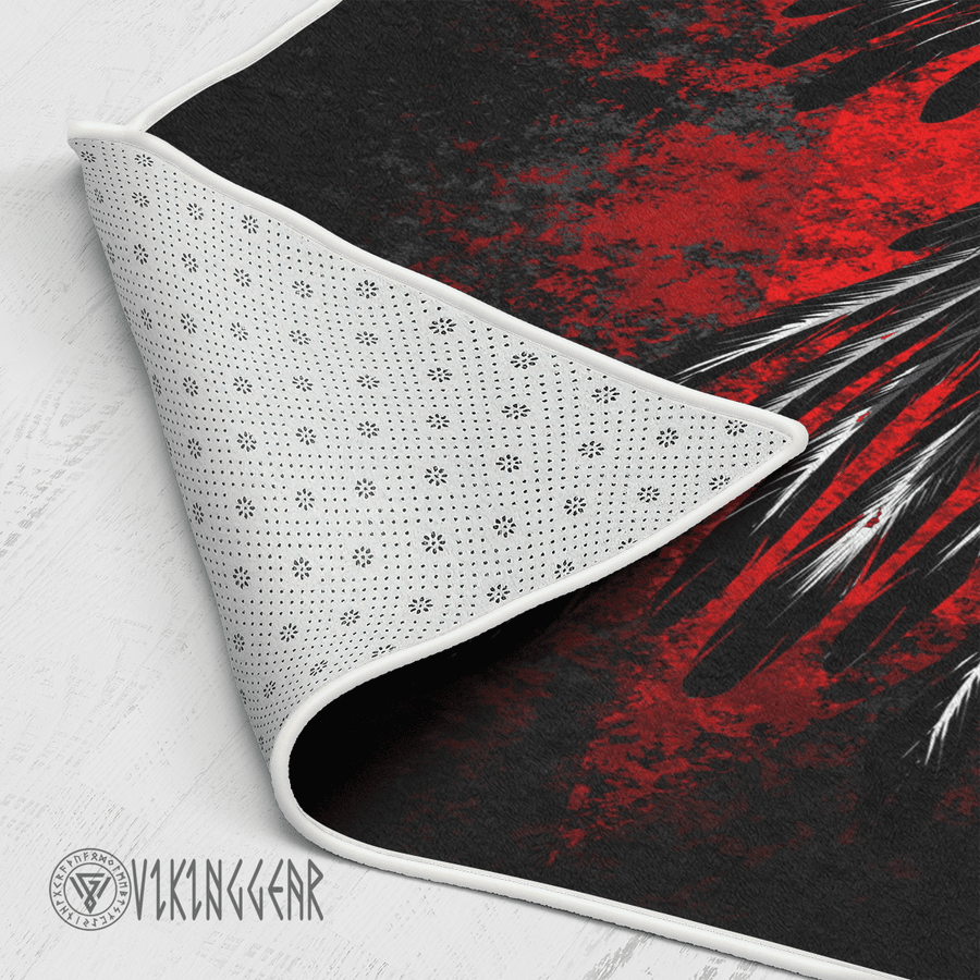With its design inspired by Norse mythology, our Raven In Lava Viking area rug captures the essence of the Viking spirit. Introduce this piece into your space and confidently display your style.