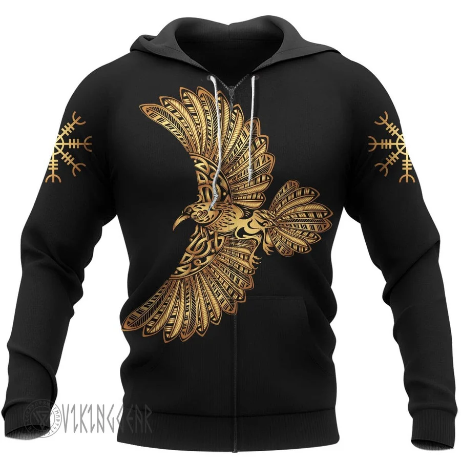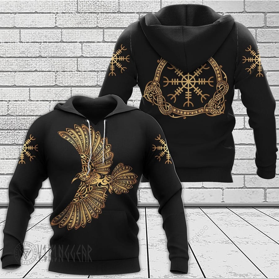 With a design inspired by Norse mythology, Raven The Helm of Awe Viking Hoodie embodies Viking spirit. Own it to confidently showcase your Viking style.