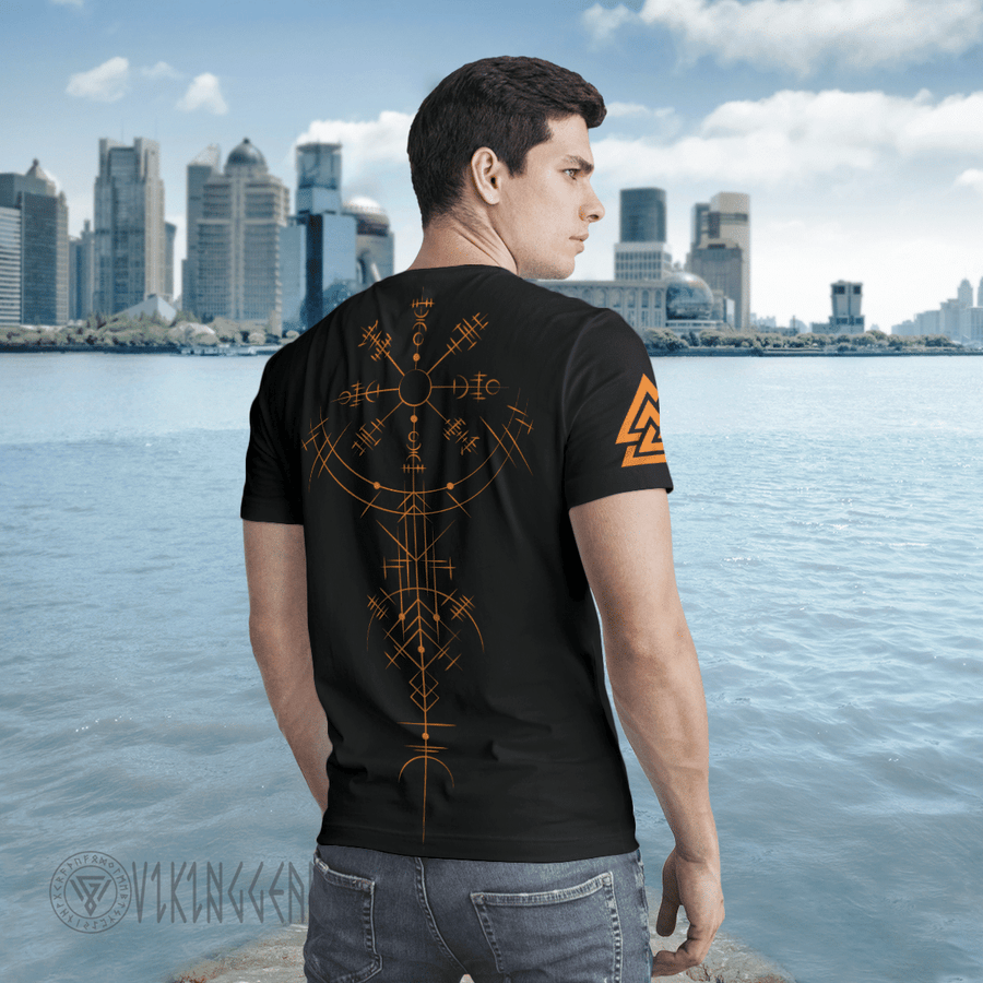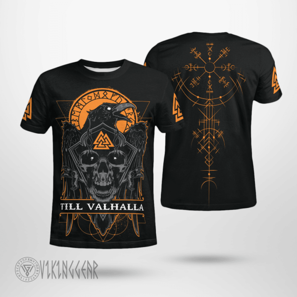 With a design inspired by Norse mythology, Raven Till Valhalla Vegvisir Viking T-Shirt embodies Viking spirit. Own it to confidently showcase your Viking style.
