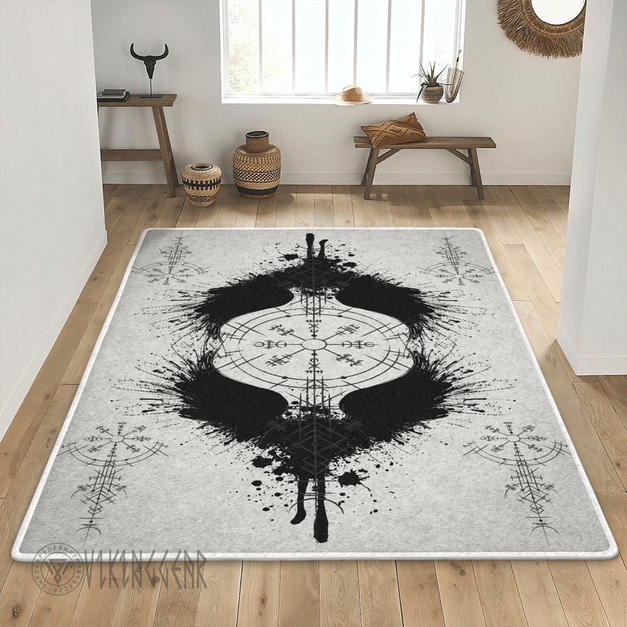 With its design inspired by Norse mythology, our Raven Vegvisir Black Design Viking area rug captures the essence of the Viking spirit. Introduce this piece into your space and confidently display your style.