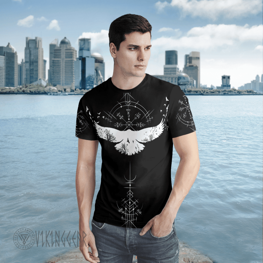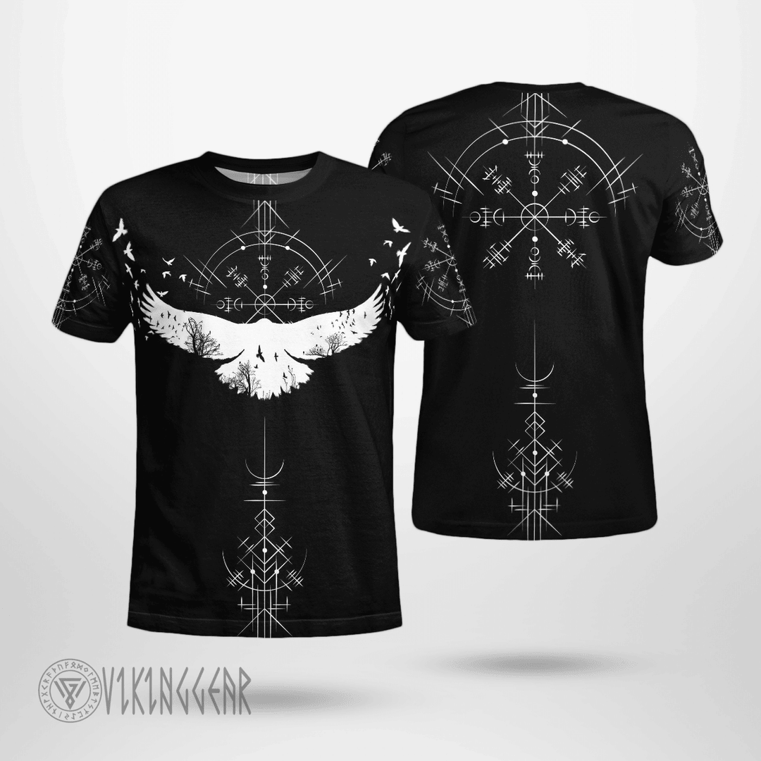 With a design inspired by Norse mythology, Raven With Vegvisir Black Viking T-Shirt embodies Viking spirit. Own it to confidently showcase your Viking style.