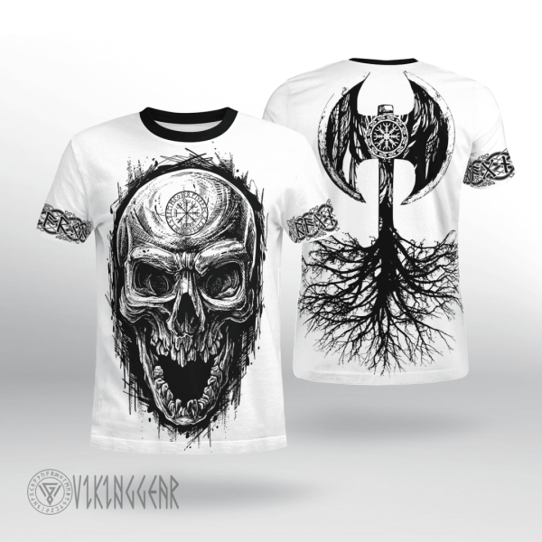 With a design inspired by Norse mythology, Skull And Axe Root Of Yggdrasil Viking T-shirt embodies Viking spirit. Own it to confidently showcase your Viking style.