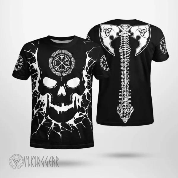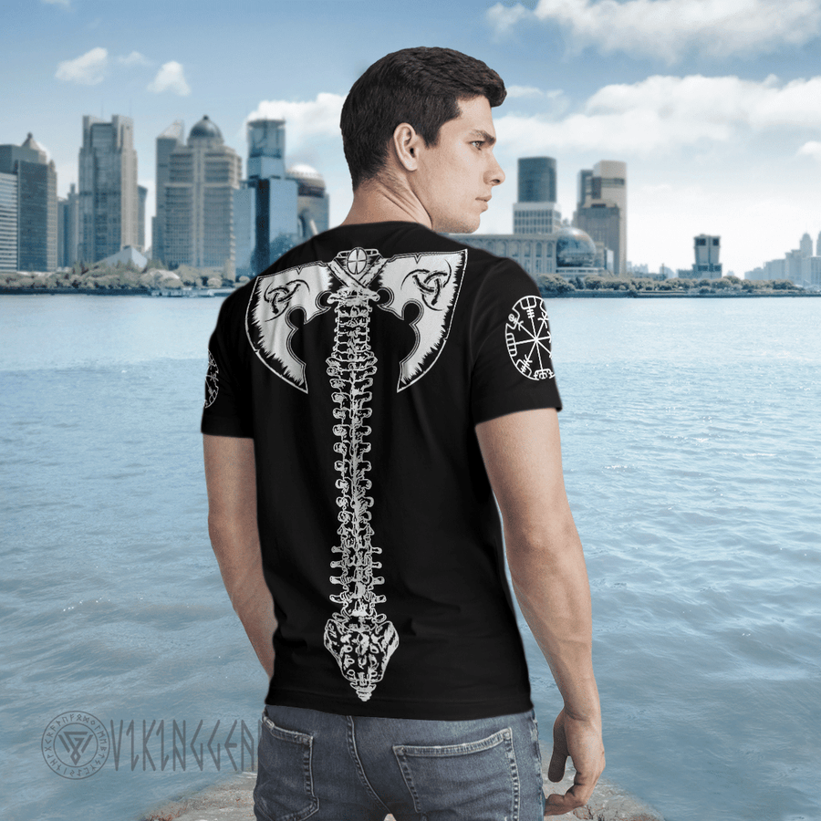 With a design inspired by Norse mythology, Skull Backbone Is An Ax Viking T-Shirt embodies Viking spirit. Own it to confidently showcase your Viking style.