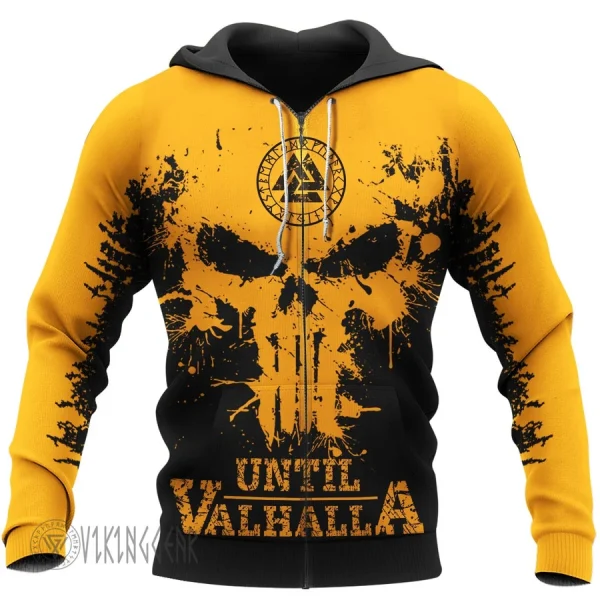 With a design inspired by Norse mythology, Skull Until Valhalla Fenrir Viking Hoodie embodies Viking spirit. Own it to confidently showcase your Viking style.
