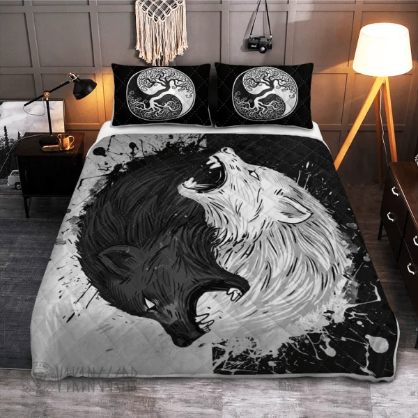 With its design inspired by Norse mythology, our Splatter Painting Yinyang Skoll and Hati Viking quilt set captures the essence of the Viking spirit. Introduce this piece into your space and confidently display your style.