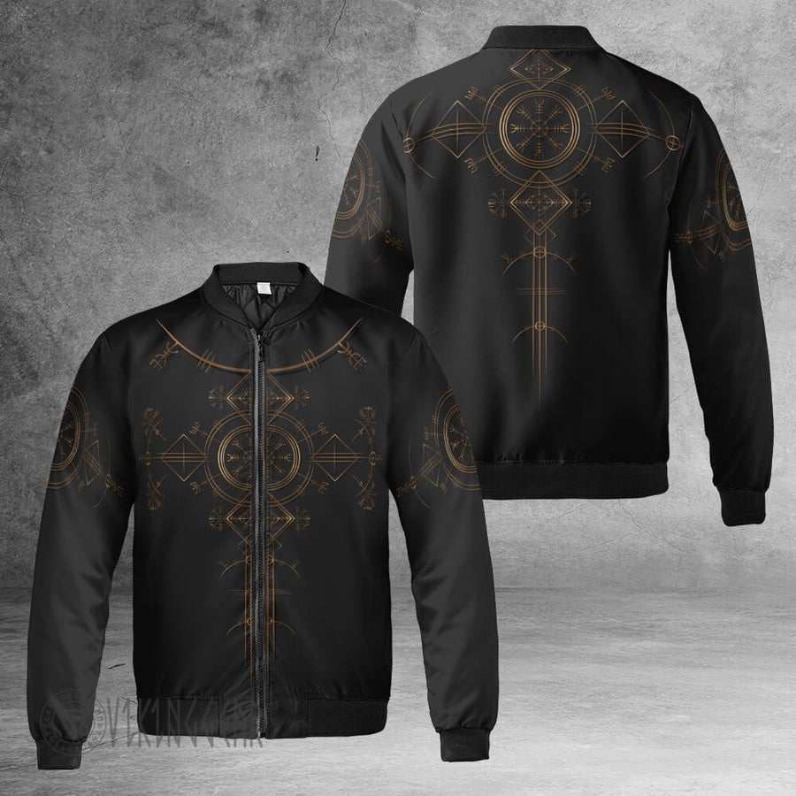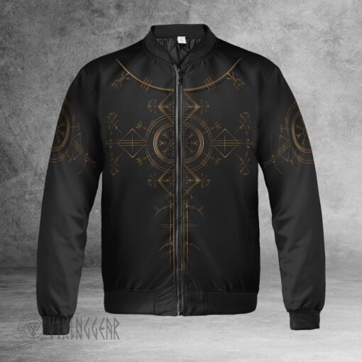 With a design inspired by Norse mythology, The Helm Of Awe Gold Viking Bomber embodies Viking spirit. Own it to confidently showcase your Viking style.