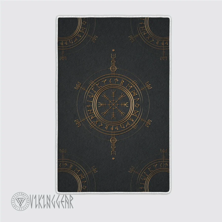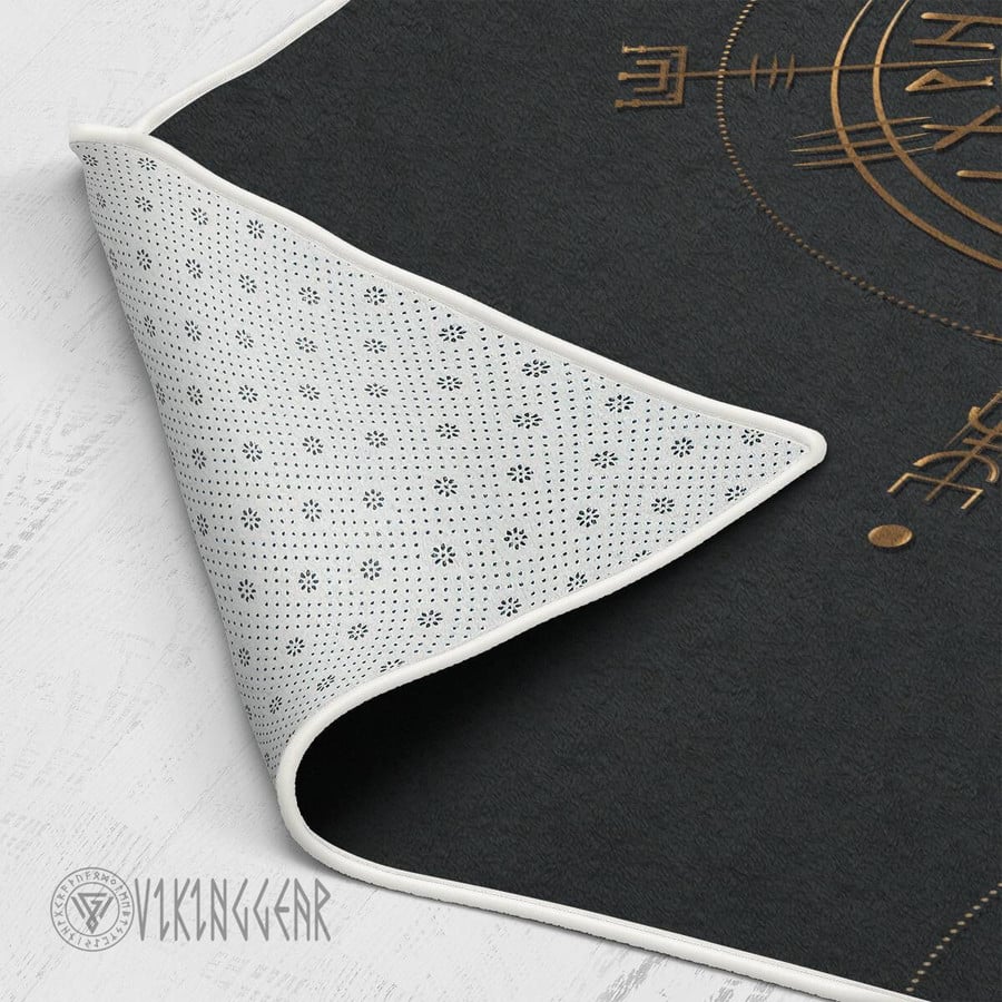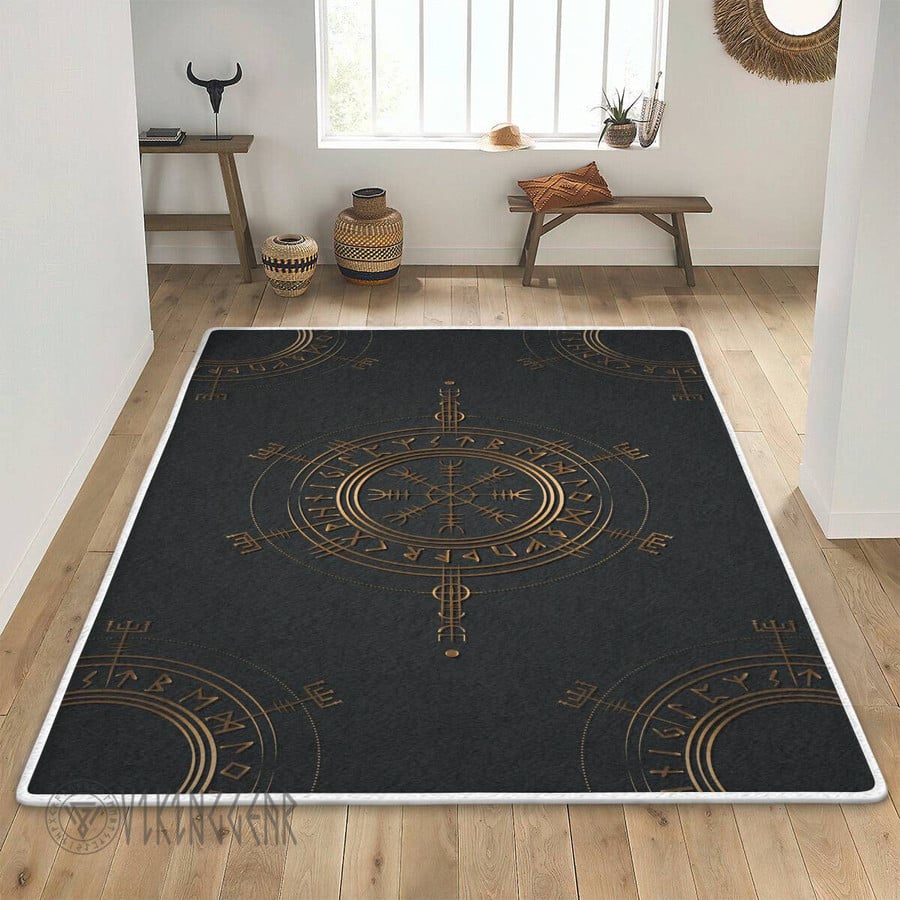 With its design inspired by Norse mythology, our The Helm of Awe Symbol Gold Viking area rug captures the essence of the Viking spirit. Introduce this piece into your space and confidently display your style.