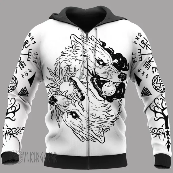 With a design inspired by Norse mythology, The Sons of Fenrir: Hati and Skoll Viking Hoodie embodies Viking spirit. Own it to confidently showcase your Viking style.