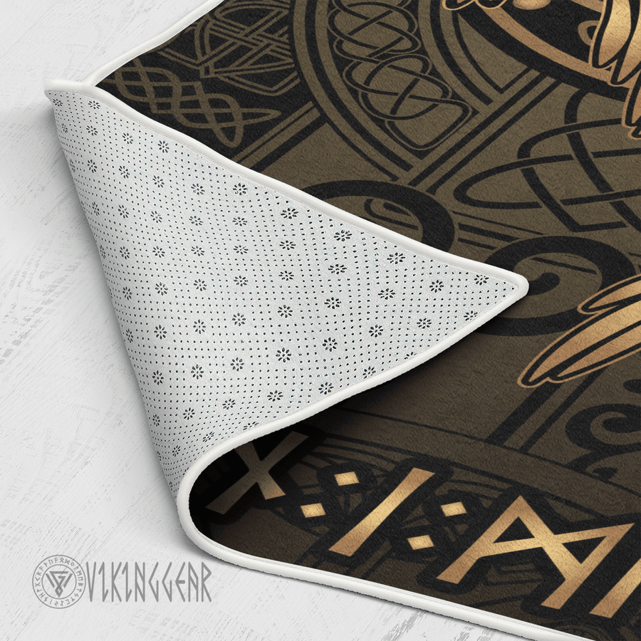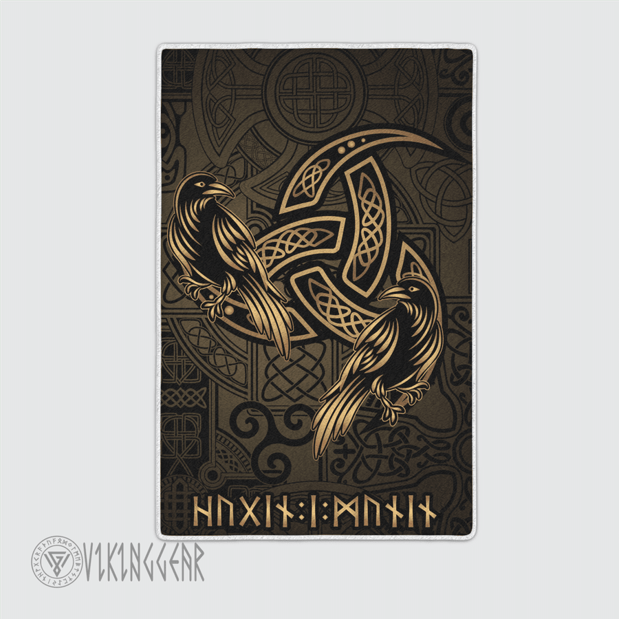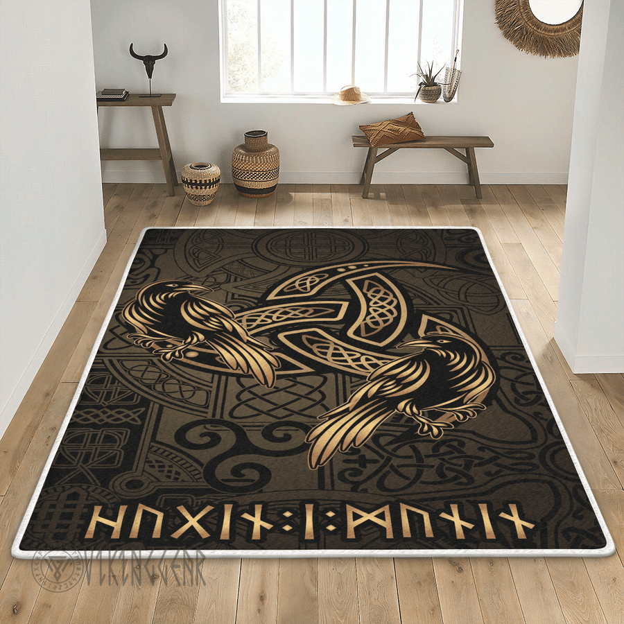 With its design inspired by Norse mythology, our The Triple Horn of Odin Hugin and Munin Viking area rug captures the essence of the Viking spirit. Introduce this piece into your space and confidently display your style.