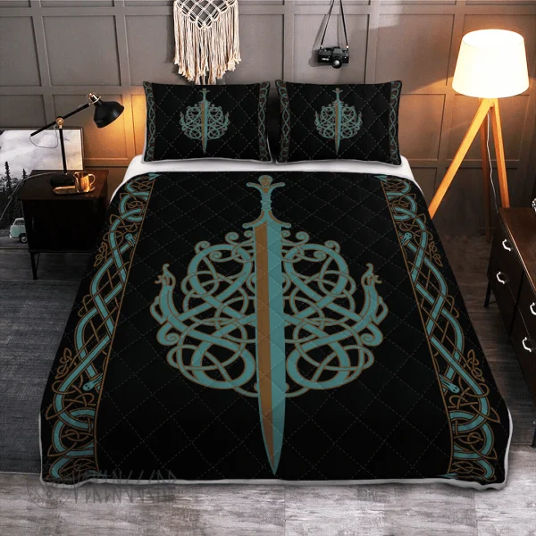 With its design inspired by Norse mythology, our The Ulfberht Swords Viking quilt set captures the essence of the Viking spirit. Introduce this piece into your space and confidently display your style.